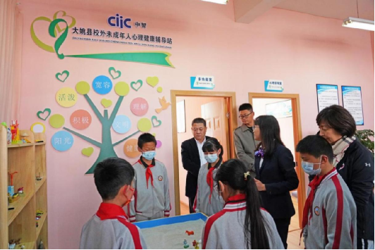调研组前往大姚县金碧小学、青少年活动中心及大姚县三台乡调研,观摩了金碧小学“中智音乐教室”、“中智机器人创客教室”、“青少年心理辅导教室”的现场教学情况,考察了中智集团资助的三台核桃森林乡村文化设施建设情况,观摩了中智客户资助的三台中心小学“学生心理辅导室”,观看了由学校教师自主编排的具有彝族舞蹈特色的课间操表演。