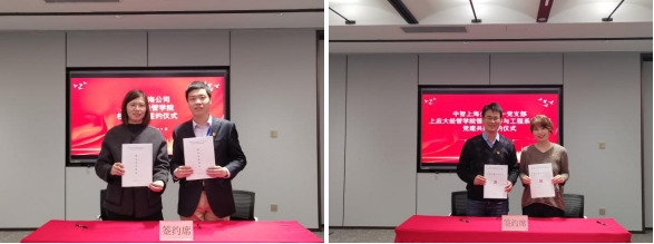 随后,双方进行了校企合作协议、支部党建联建协议的签署仪式。在朱诗勃同志的带领下,上应大经管学院一行参观了中智大厦,详细了解中智上海在人才培养、带教培养、产教融合等方面的经验做法及推广案例。